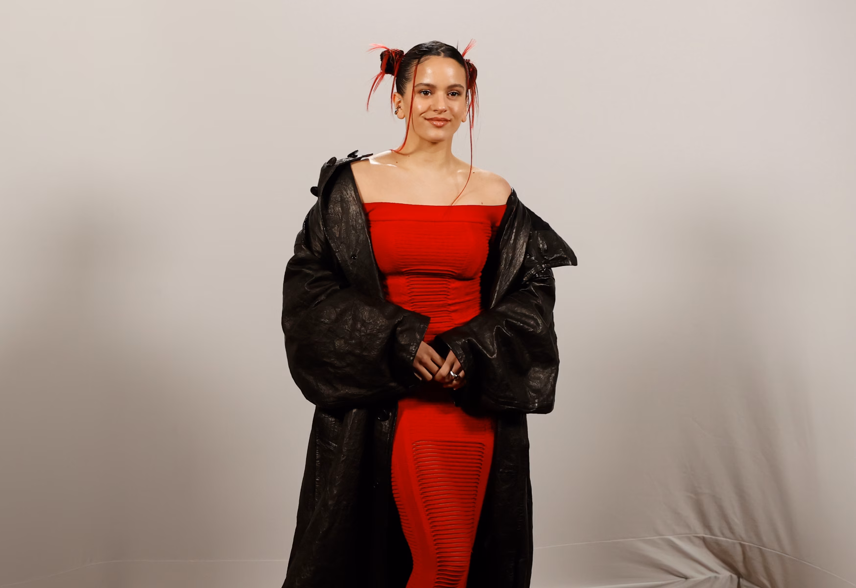 Por otro lado, Rosalía muestra también su gusto por la estética oriental y opta por lucir faldas tableadas de estilo colegial, vestidos semitrasparentes y moños pequeños a cada lado de su cabeza.