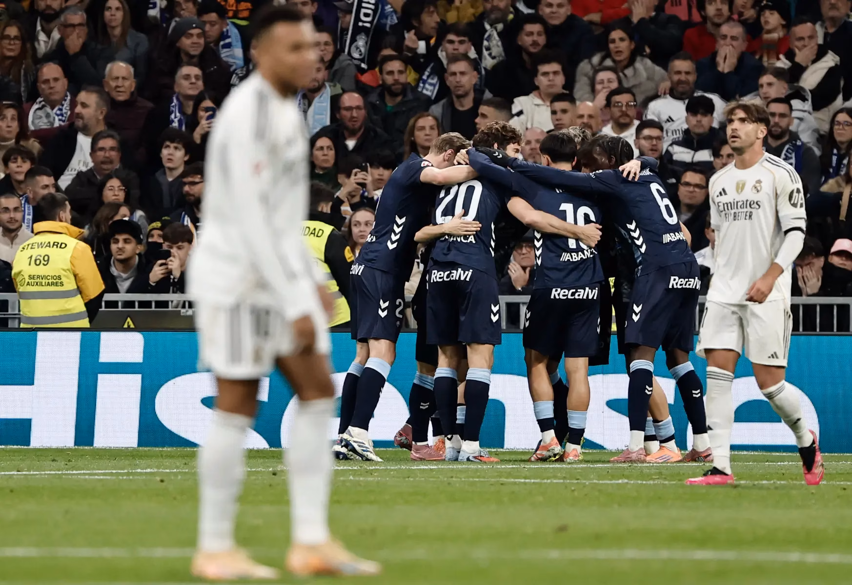 Atascado el Real Madrid, también en su casa, en el Bernabéu. Y con una impotencia que reflejó un Fran García que puso las cosas aún más difíciles a su equipo. Dos amarillas en dos jugadas consecutivas, con un minuto y 13 segundos de diferencia entre cada cartulina, dejaron al Real Madrid con diez en busca de la remontada.