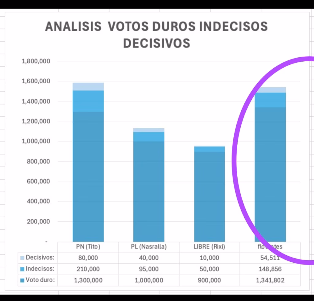 “Es que confundieron. Y esto lo digo así de frente, y ojalá que no se moleste el ingeniero Nasralla, Siempre le dije que nuestro rival directo no es Libertad y Refundación. El rival directo a vencer es el Partido Nacional, que, en su peor momento, siempre tuvieron un millón cien mil votos y ahí está el millón cien mil votos”.