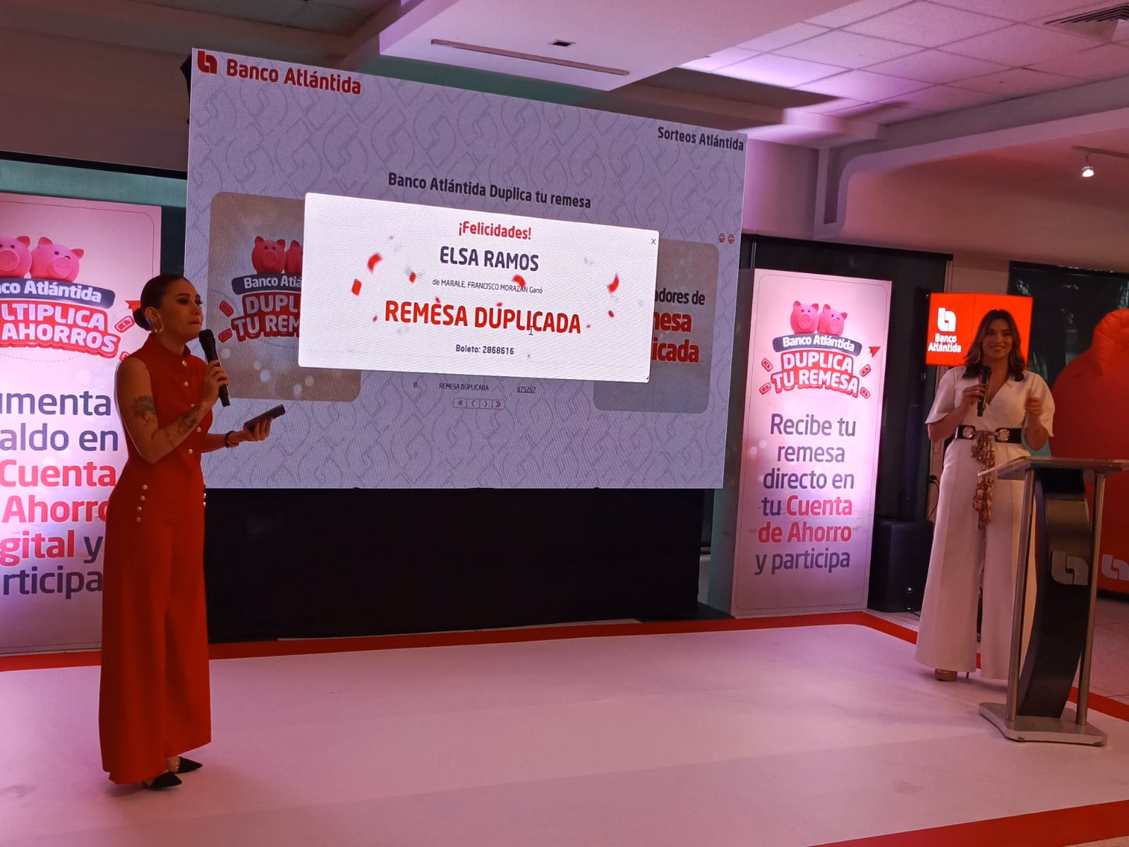 Las portadoras de estas buenas noticias en cada sorteo fueron Carolina Lanza y Jennifer Aplicano, quienes con la simpatía y el entusiasmo que las caracteriza, acompañaron los tres sorteos realizados en el salón Cultural Plaza Bancatlán, en Tegucigalpa.